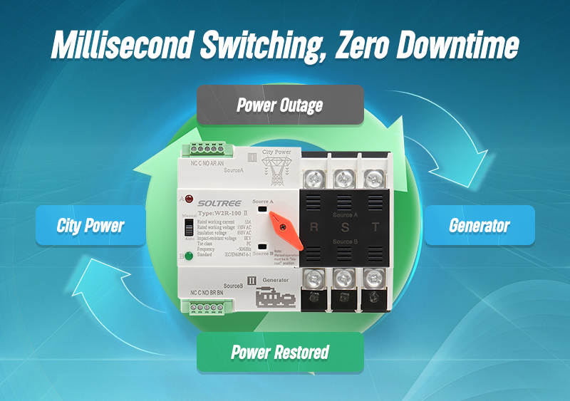 Ensure stability and safety for critical power scenarios. Soltree Automatic Transfer Switches guarantee seamless switching to backup power when the main source fails, keeping your equipment and operations running without interruption.