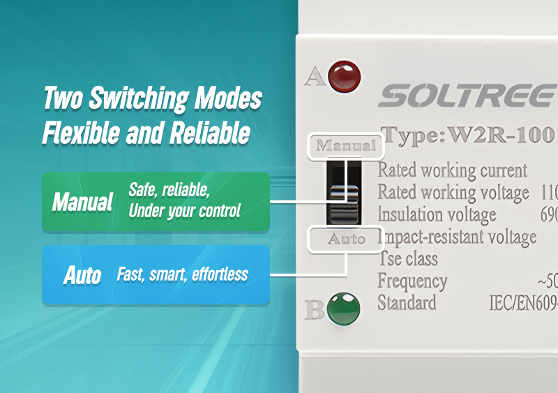 An Automatic Transfer Switch (ATS) offers two switching modes — automatic and manual — to meet different power management needs.