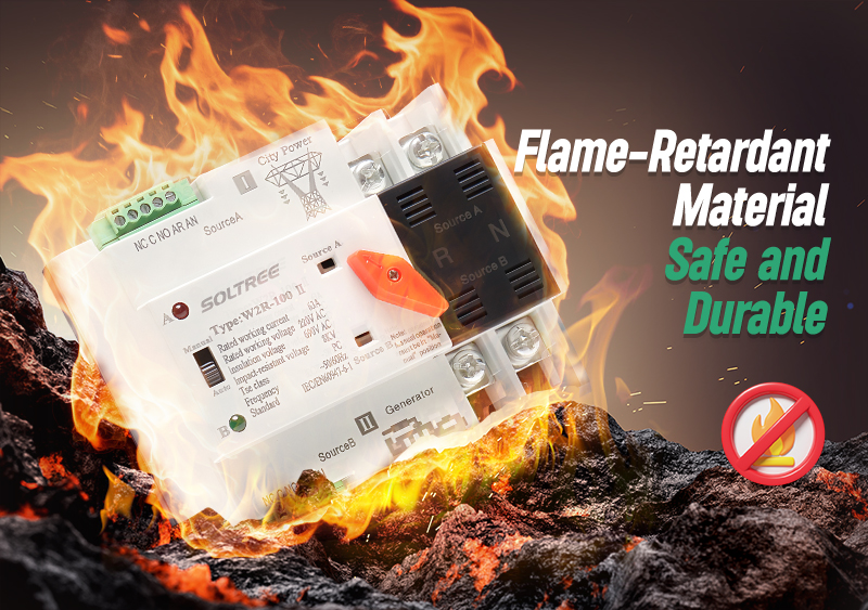 The housing and critical components of our Automatic Transfer Switch (ATS) are made from certified flame-retardant materials that can withstand high temperatures and prevent the spread of fire. In the event of overheating, electrical faults, or unexpected surges, the flame-retardant structure helps contain potential risks, protecting both your equipment and personnel.