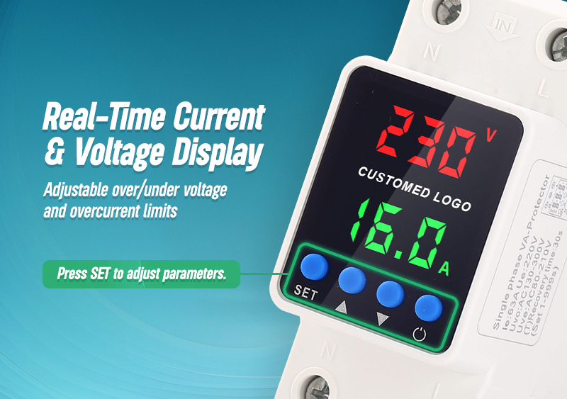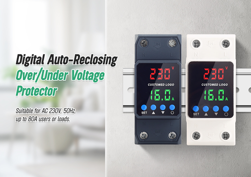 When the voltage is too high or too low, a digital voltage protector immediately cuts off power and then safely restores it when the levels go back to normal. Its built-in screen shows voltage and current in real time, and you can quickly change the thresholds and delay time. The small DIN-rail design fits in residences, rental properties, and commercial/industrial panels. It keeps things from getting damaged, cuts down on downtime, and makes equipment last longer.
