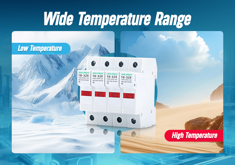 Soltree fuse holders are engineered to perform reliably in both extreme cold and high-heat environments. Whether installed in freezing outdoor conditions or hot industrial settings, they maintain stable electrical connections and ensure safe operation.