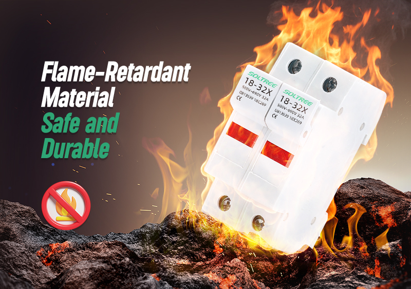 Soltree fuse holders are built with high-quality flame-retardant materials that provide an extra layer of safety. Even under extreme conditions such as overheating or electrical faults, the housing resists ignition and prevents the spread of fire, protecting both equipment and users.