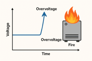 When the supply voltage goes above a device’s safe functioning range, this is called “over voltage.” If you leave something on for too long, it might burn insulation, hurt electronic boards, or make motors too hot. Some common causes are problems with the grid, broken transformers, lightning strikes, or abrupt voltage spikes when electricity is restored after an outage.