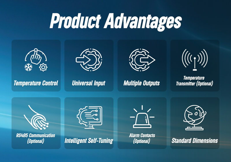 With universal sensor compatibility (TC, RTD, NTC), multiple output options (relay, SSR, 4–20mA, 0–10V), and RS-485 Modbus communication, our controllers deliver reliable performance across industrial and laboratory applications.