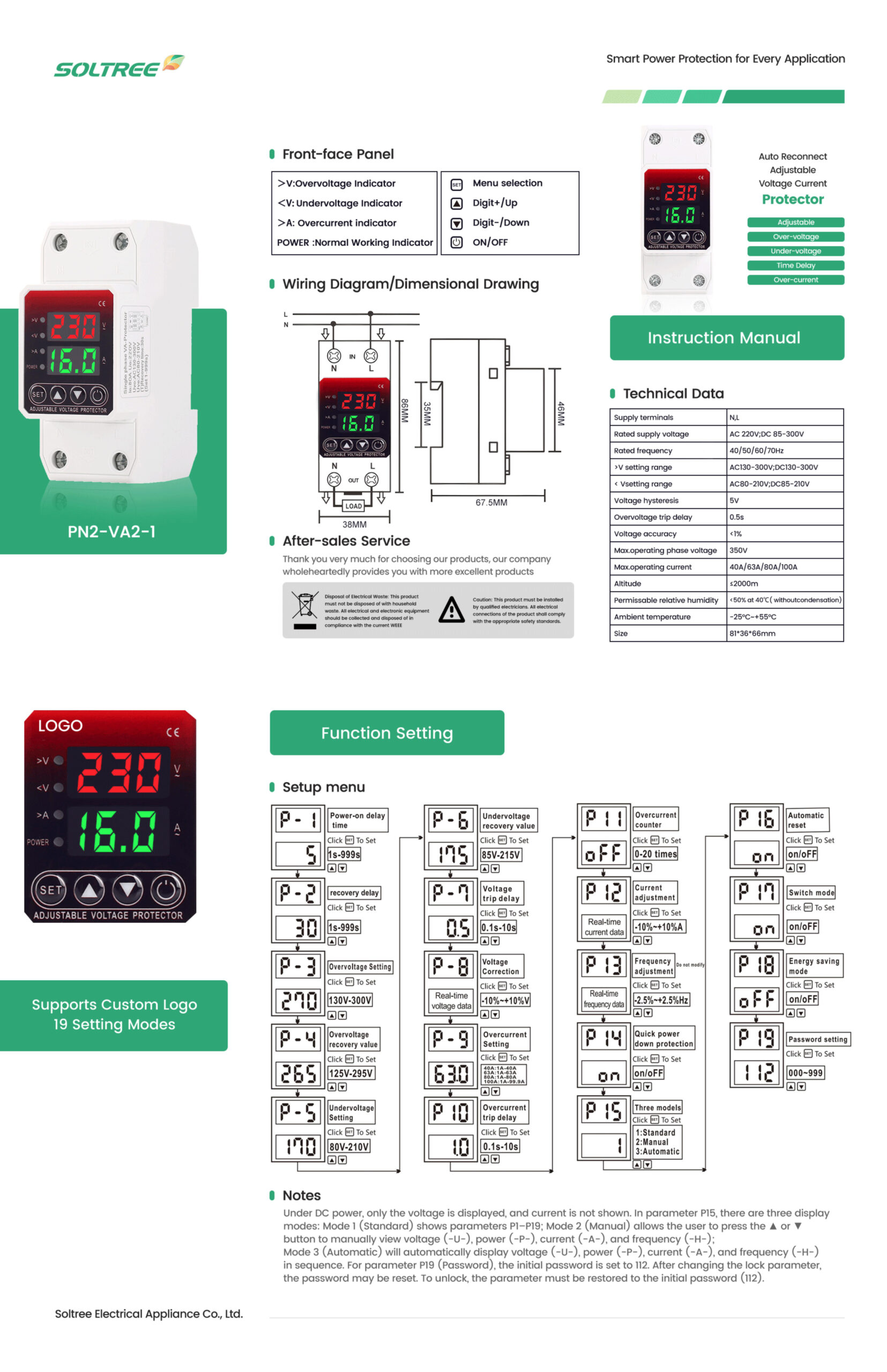 Technical Specifications Voltage and Current Protector PN2-VA2-1
