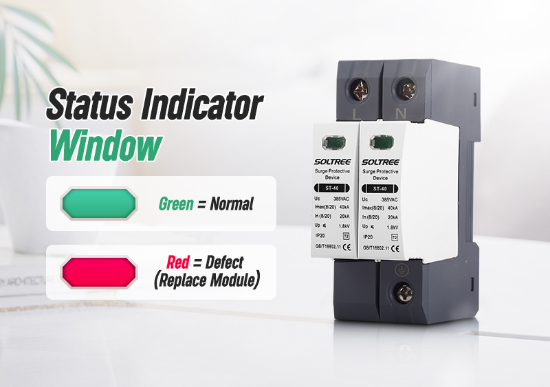 Traditional surge protection device lack a status window, making it impossible to know when the device is damaged and needs replacement. The new SPD comes with a built-in indicator window, offering a clear and intuitive way to check its working condition.