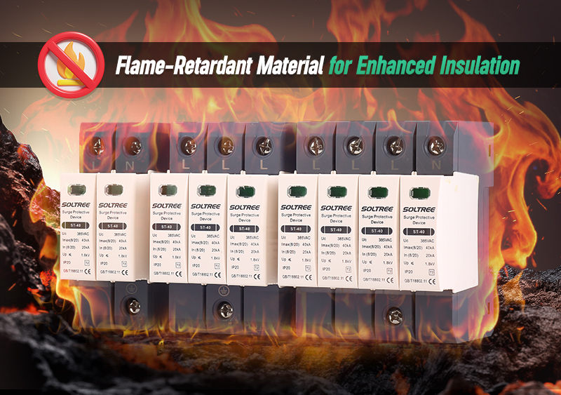 During lightning strikes, the high voltage and current may break through the surge protector and generate sparks. Without flame-retardant materials, the consequences could be disastrous.