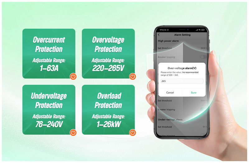 Unlike traditional breakers that only trip after a fault occurs, Soltree smart WiFi circuit breakers allow users to set custom alarm thresholds in advance. Once abnormal conditions such as overcurrent, overvoltage, undervoltage, or overload are detected, the breaker responds instantly by cutting off the circuit or sending a real-time alert through the mobile app. This proactive protection ensures both equipment safety and system stability, reducing downtime and preventing costly damage.