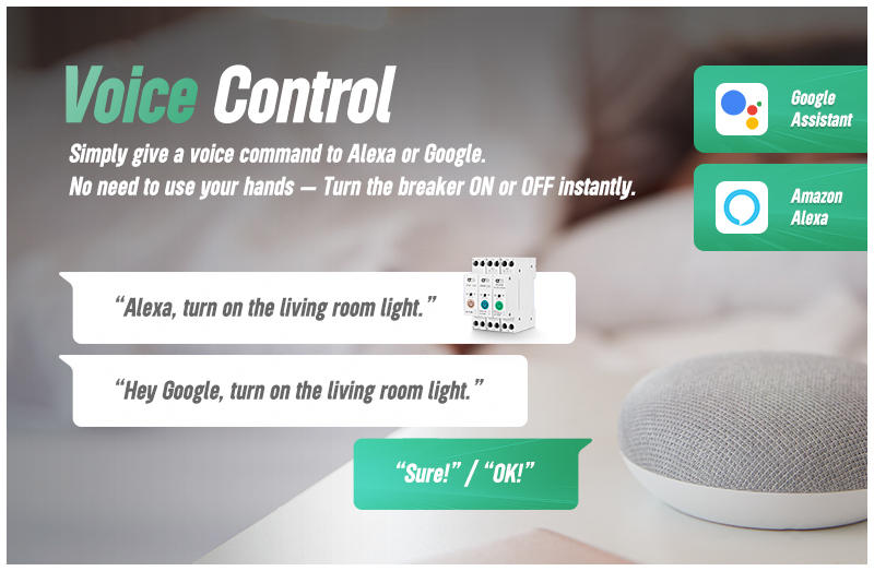 Hands-free operation makes smart breakers even easier and more convenient to use. With built-in voice control, you can simply speak to your assistant and instantly switch appliances or circuits on and off—no phone or manual action required.